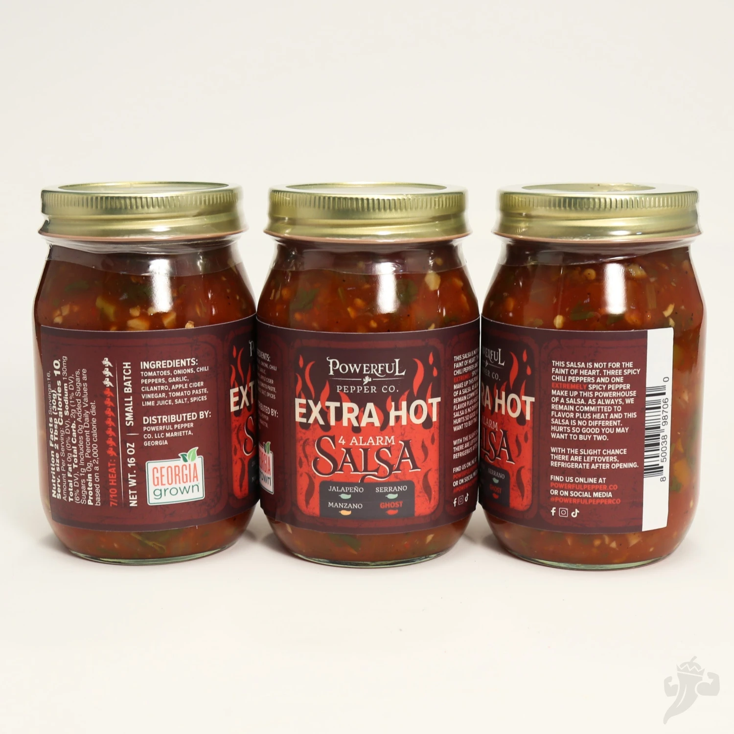 Get ready to take your taste buds on a wild ride with our award-winning 4 Alarm Salsa! Crafted by Powerful Pepper Company, this salsa is not for the faint of heart. We’ve turned up the heat by adding a LOT of ghost peppers into the mix, elevating the spice level to a whole new dimension.