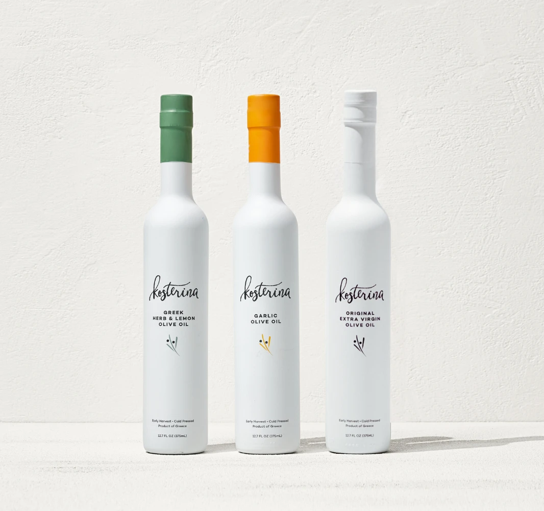 Our Original Extra Virgin Olive Oil teams up with two of our classic flavors – Garlic and Greek Herb & Lemon – for a trio that is sure to be a cook’s best friend.
