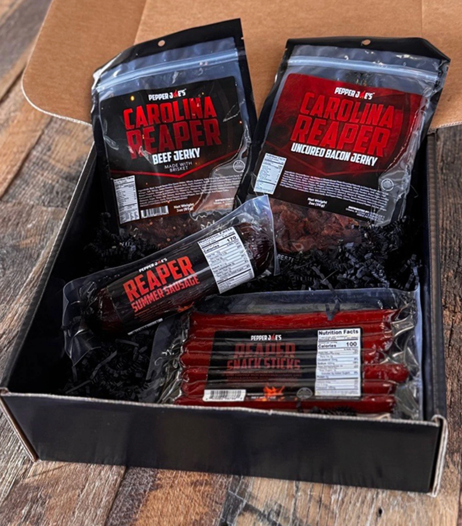 This exclusive bundle of Carolina Reaper sausage, snack sticks, and jerky is the ultimate gift for a friend, family member, or yourself.