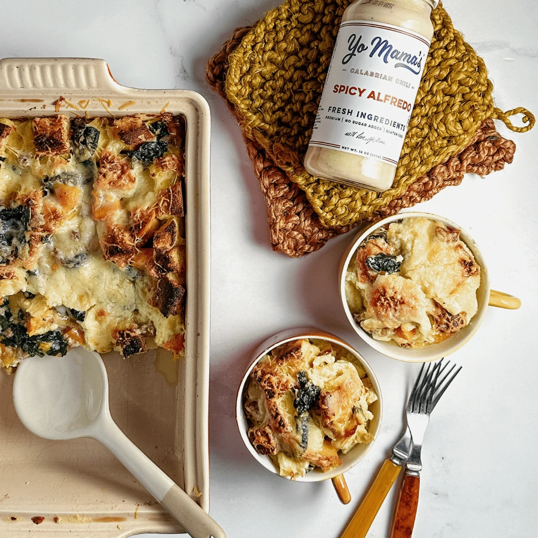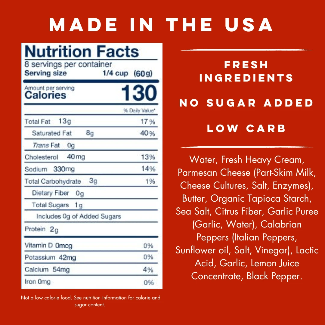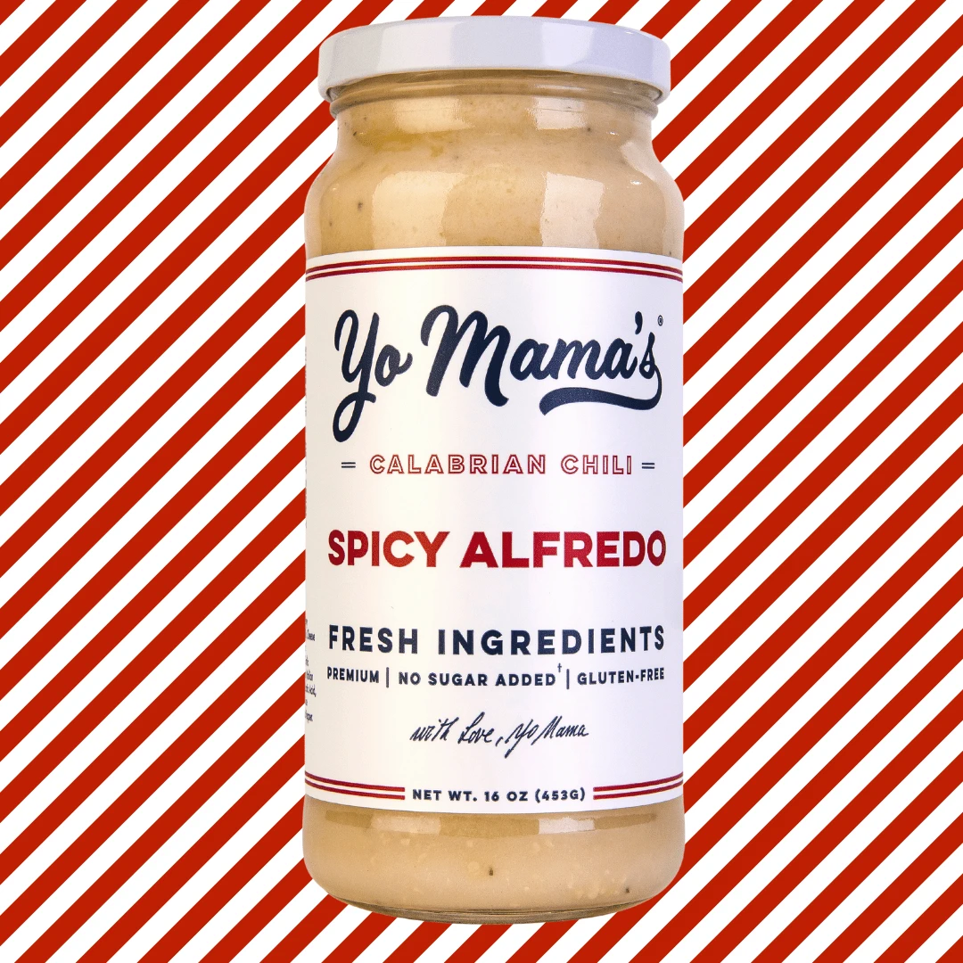 Yo Mama’s Spicy Alfredo Sauce is inspired by Mama’s homemade recipe, handcrafted in small batches. Made with Calabrian Chili, real butter, cream, and Parmesan cheese, our recipe is free from added preservatives, gums, and fillers. Indulge in this masterpiece, which contains no added sugar or gluten. Elevate your meals with Yo Mama’s Spicy Alfredo Sauce, a celebration of tradition and passion in every jar.