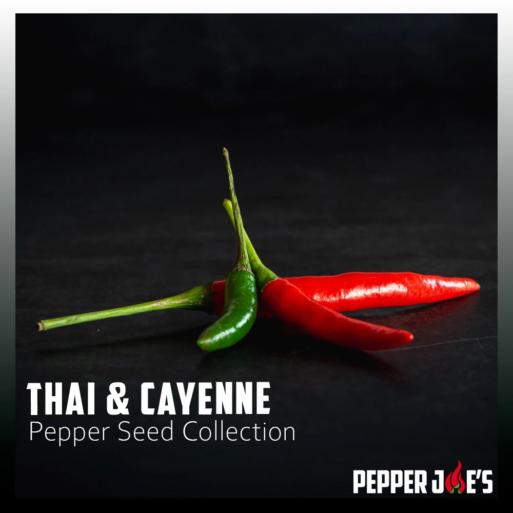 This collection is perfect for the heat lover who enjoys growing different hot pepper varieties or the culinary chef looking for new ways to cook food. Use the Thai varieties to create delicious Thai dishes or any spicy Asian cuisine, and the Cayenne varieties for drying and making your own blend of pepper powder or flakes!