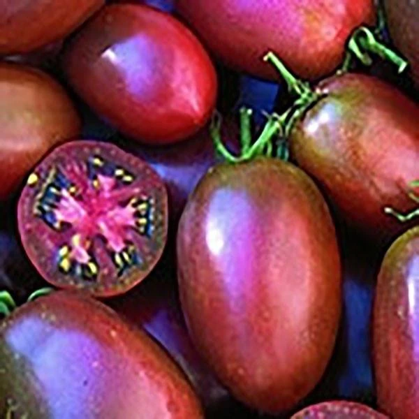 These tomato plants are very productive, yielding high quantities of these plum-shaped, 3-4″ long fruits. Resembling the shape of Roma Tomatoes, these fruits will ripen from green to their mature purplish-red color and have smooth, crack-free skin.