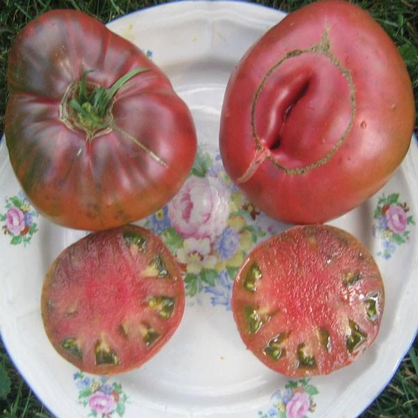 The tomato plants can get as tall as 6 ft. but typically stretch up to an average of 4 ft. tall. Watch as they produce these 5″ long Vorlon tomatoes that have surprisingly greenish shoulders as they ripen. Cut through the thin skin of these fruits, and you’ll notice dark red flesh filled with juicy sweetness on the inside!